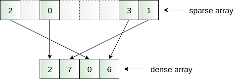 The idea and implementation of the sparse set are really simple! Here are some very good reads on the topic. Since they've already done a very good job in explaining the concept, I shall leave you to explore them on your own: